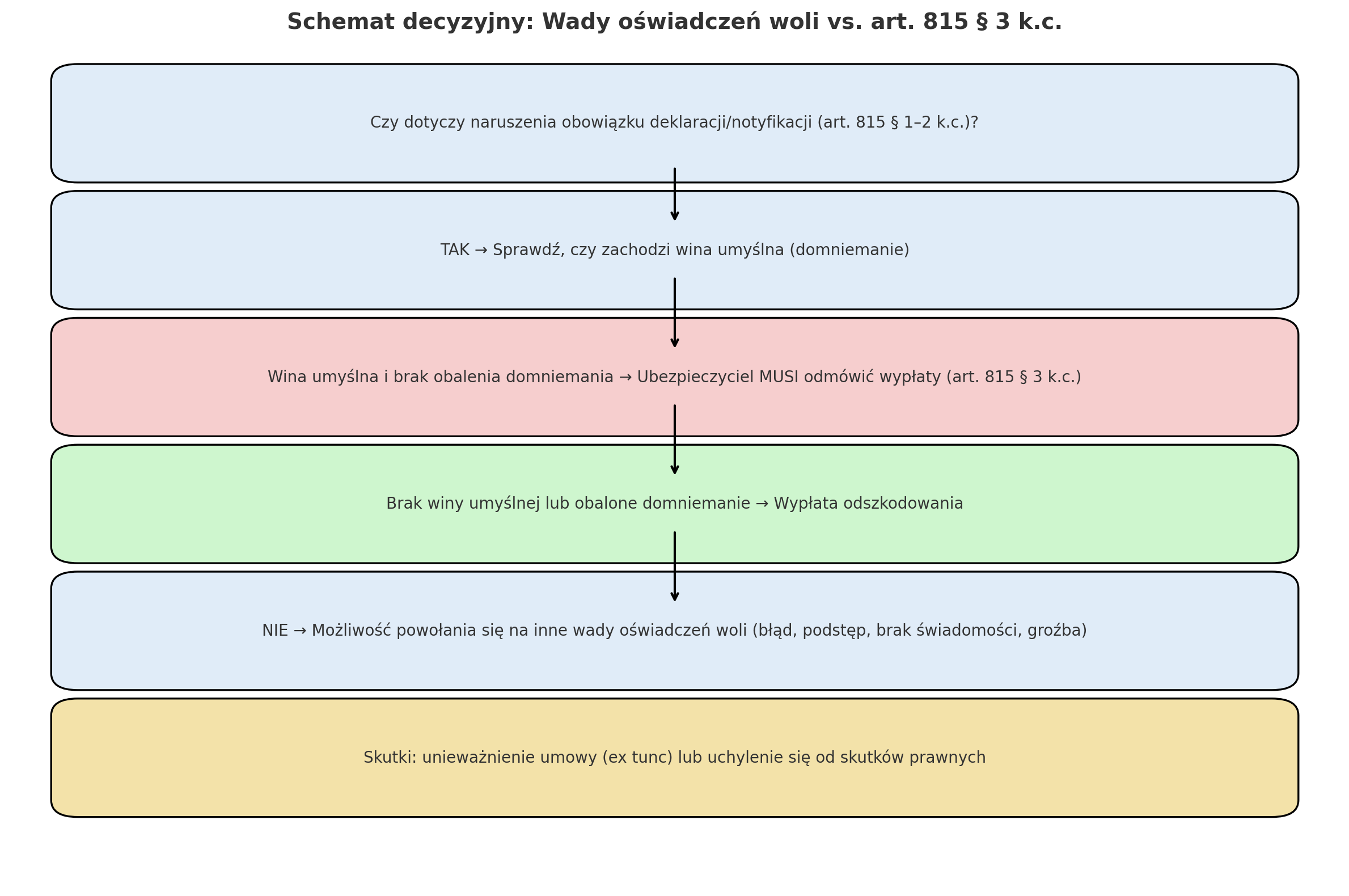 📌 Domniemanie z art. 815 § 3 k.c. jest potężnym narzędziem ubezpieczyciela – jeśli klient nie obali domniemania, odszkodowania nie będzie, nawet jeśli zatajona okoliczność nie miała ewidentnego wpływu na wypadek.